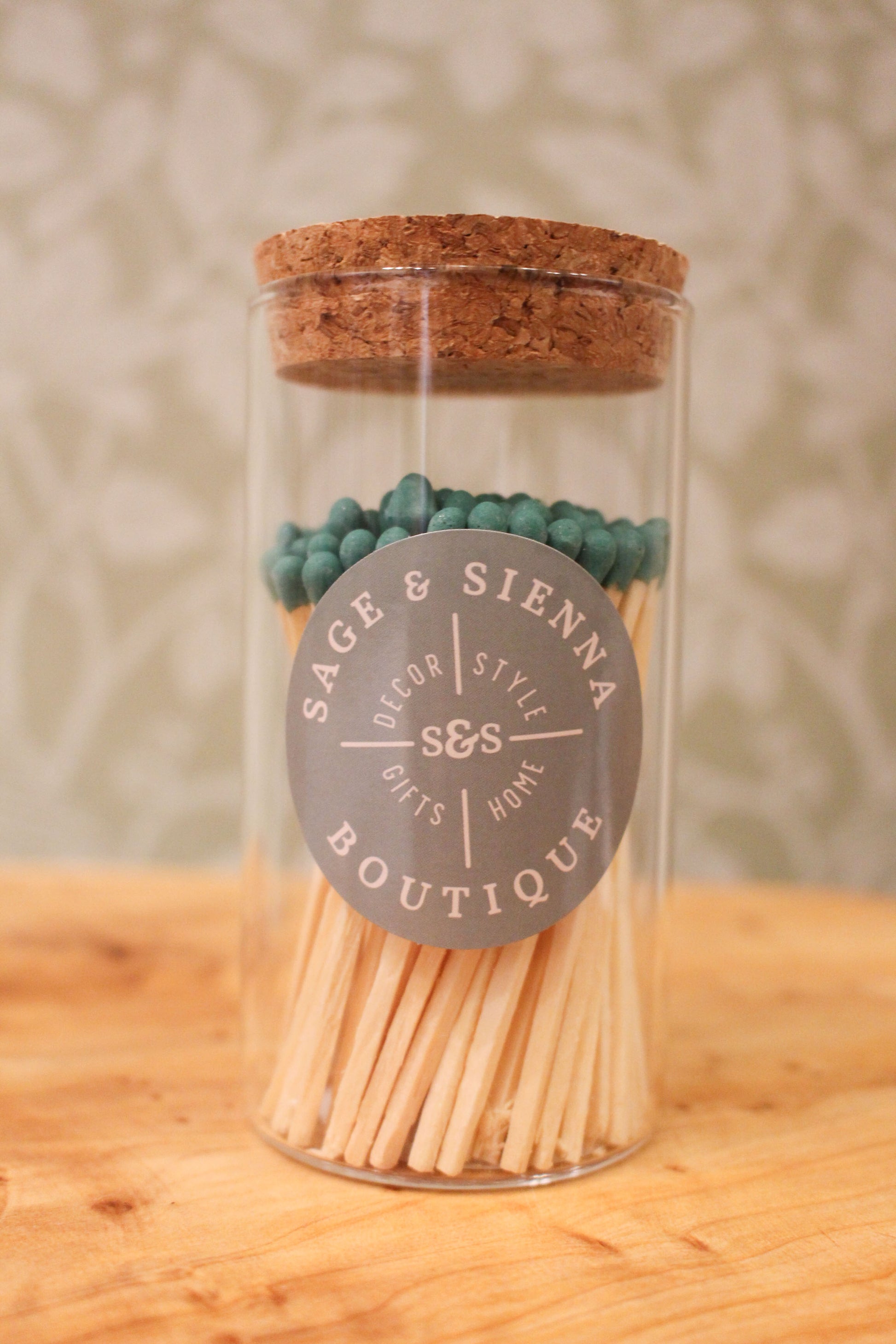 Add a touch of charm to your candle ritual with the Sage & Sienna Match Jar. Filled with long wooden matches topped with deep green tips, this stylish glass jar keeps your matches beautifully displayed and close at hand. The cork lid adds a warm, natural finish, while the Sage & Sienna logo makes it a lovely decorative piece on its own.