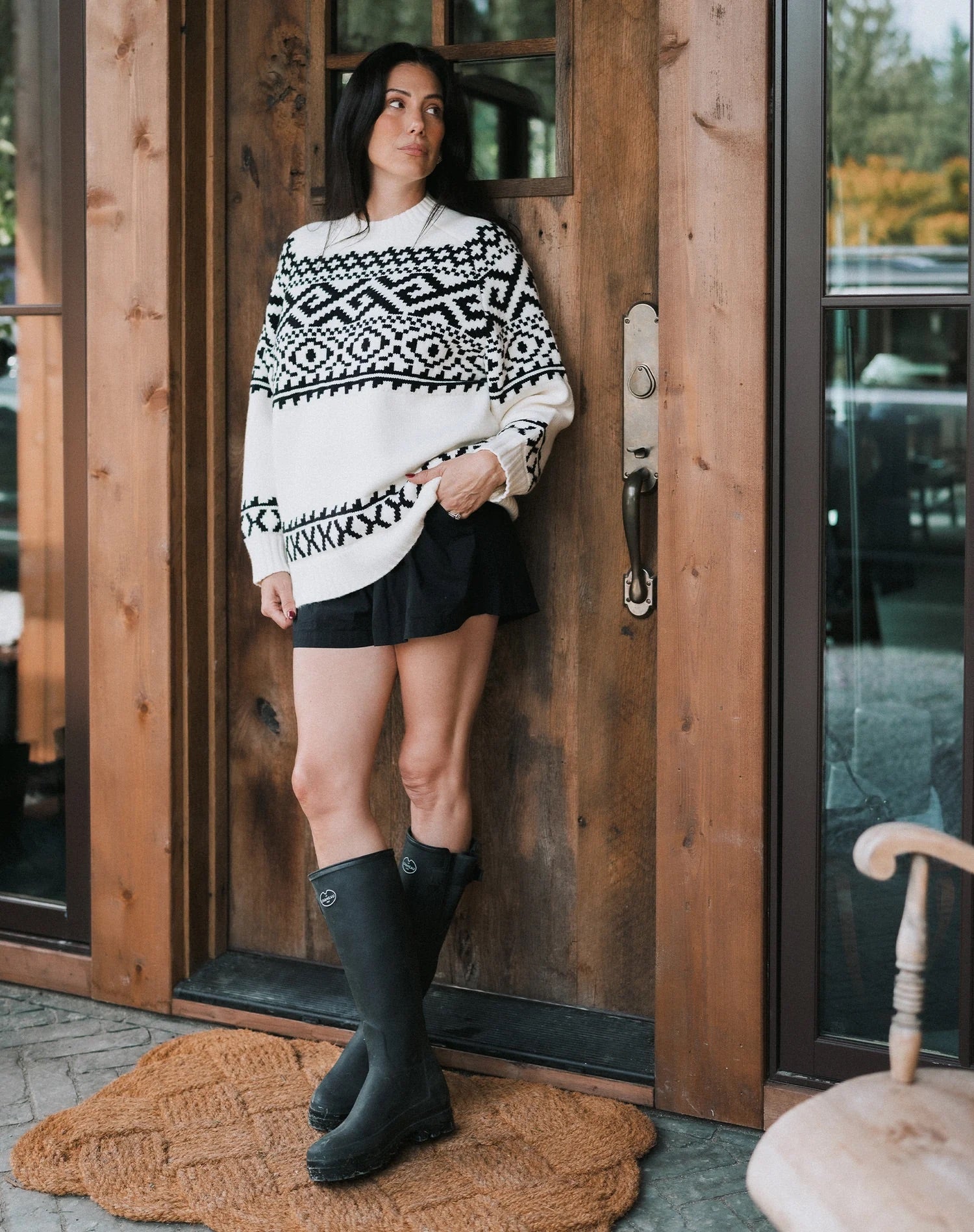 Après-ski, always. Our Fair Isle Sweater is here in a refined silhouette and new colours. With a striking pattern across the front and back, this knit has a wide oversized body, fits shorter than last year's and drop shoulders. It’s the iconic sweater you’ll reach for again and again.