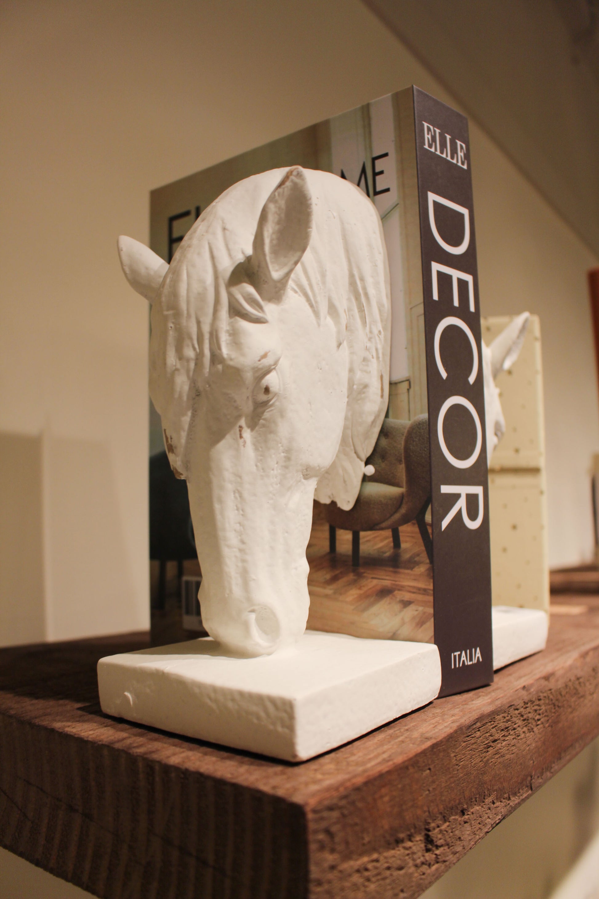 Elegant and sculptural, these Horse Head Bookends bring a touch of timeless charm to any shelf or tabletop. Each piece features a beautifully detailed horse head with a soft, matte white finish, creating a look that’s both classic and modern.
