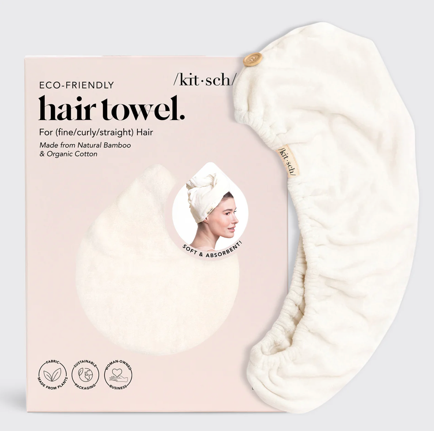 Our hair towels are a lighter and more comfortable alternative to wrapping your hair in heavy bath towels. Unlike cotton towels that can be rough on hair, the texture of microfiber is gentle and soft. Our hair towel includes a button to secure it in place as well.