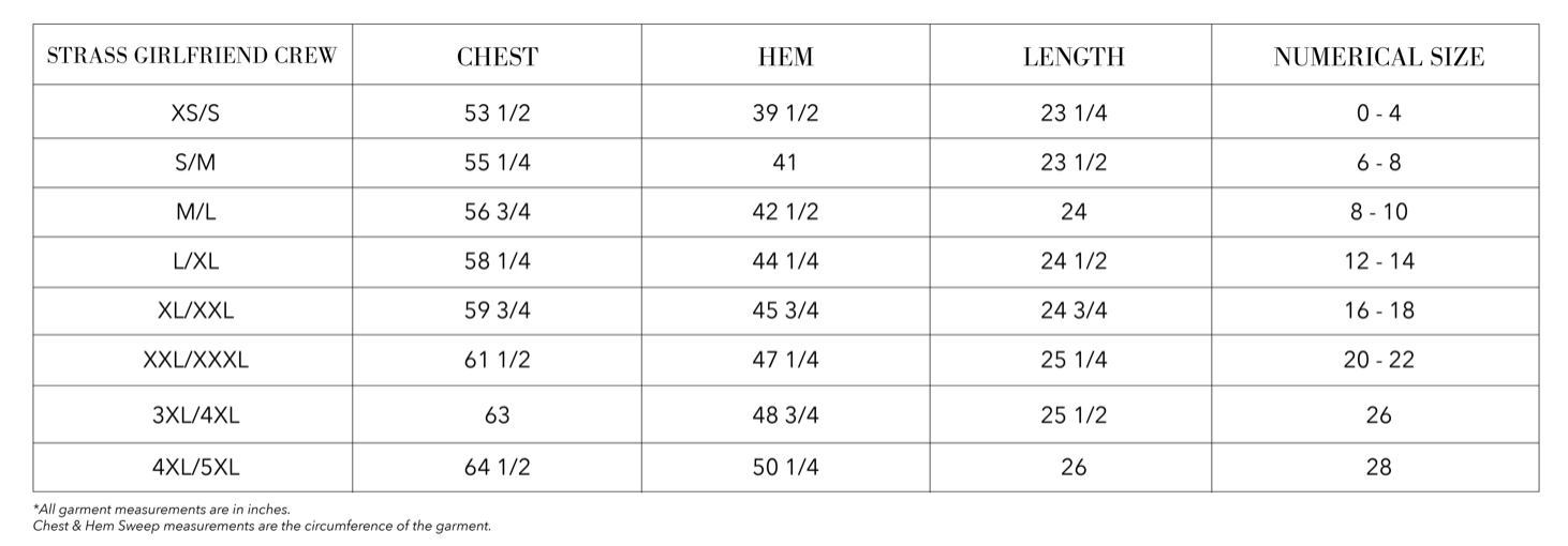 Our Girlfriend Crew has a relaxed silhouette that sits perfectly at the hip with a dropped shoulder for extra comfort. This style is designed for a true-to-size fit rather than an oversized look, see the size chart for details. Complete the look with the matching Rhinestone Oversized Jogger.